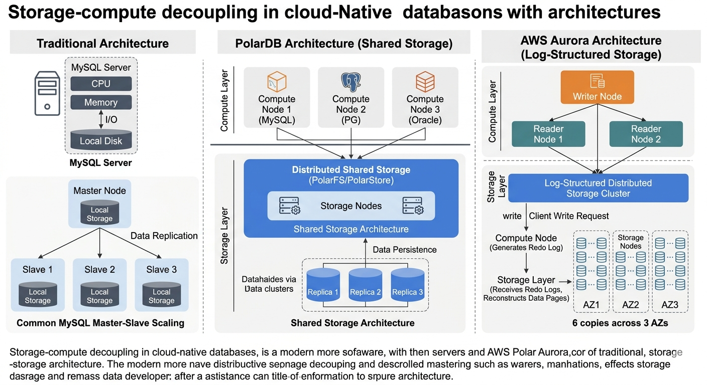 随着互联网业务规模不断扩大,传统关系型数据库架构逐渐暴露出一些瓶颈,例如扩展能力不足、存储成本高、读写压力集中等问题。为了应对这些挑战,云厂商开始设计一种新的数据库架构模式:存算分离(Storage-Compute Decoupling)。